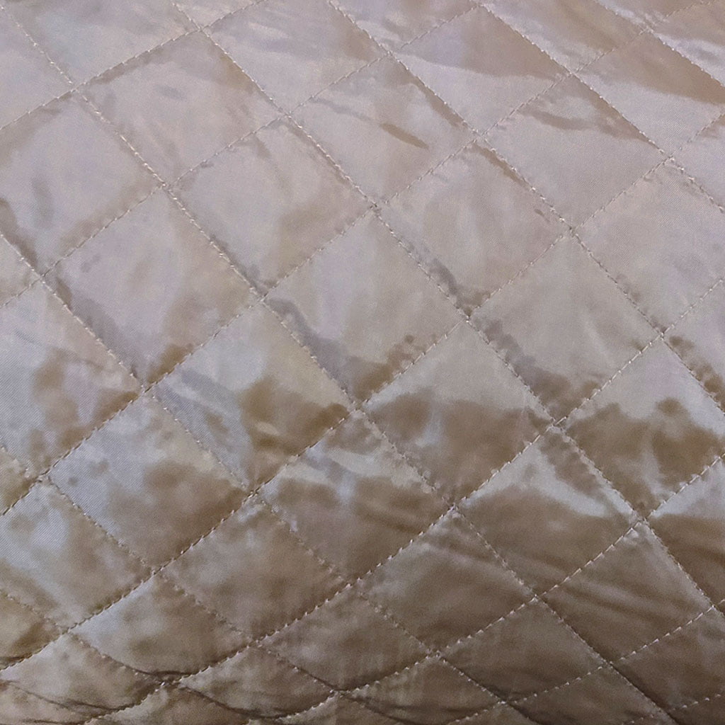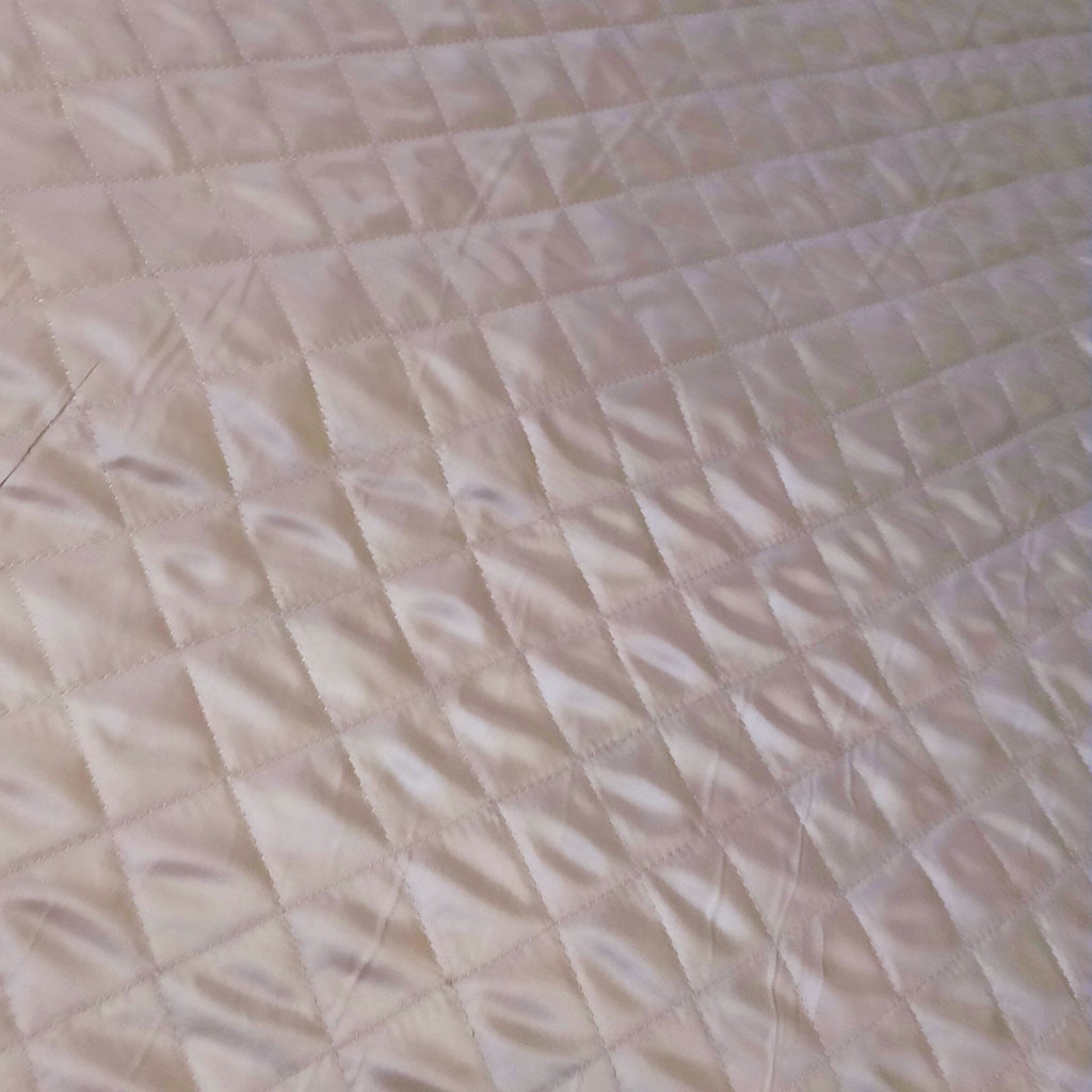 Wysokiej jakości podszewkowa tkanina pikowana. Wierzchnia strona pokryta tkaniną podszewkową poliestrową, lewa strona pianką lateksową. Całość pikowana trwale. Zastosowanie jako tkanina podszewkowa w kurtkach, płaszczach jak również w dekoracjach m.in. do kap, narzut na łóżko.